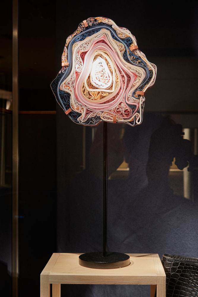 Two-dimensional papers go through metamorphosis as they take on wondrous shapes in the form of a collection of handcrafted paper curiosities. The store’s windows turn into a cabinet of curiosities hosting exotic animals and paraphernalia.
